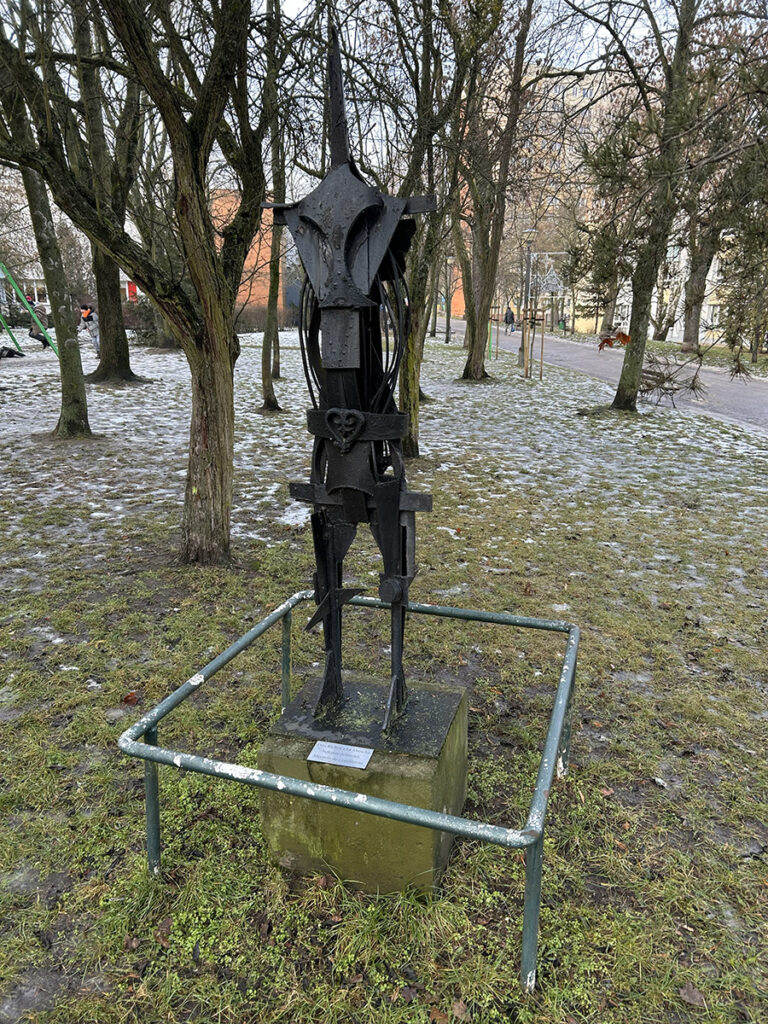 Wspomnienie rzeźby o takim samym tytule pojawia się jednak w protokole dotyczącym organizacji VI Wystawy Rzeźby Plenerowej Merkury‘74, który zachował się materiałach archiwalnych Sekcji Rzeźby Poznańskiego Oddziału Związku Polskich Artystów Plastyków. Jej autorem miał być poznański rzeźbiarz Mieczysław Chojnacki, który już wcześniej stworzył bliźniaczą pracę o tym samym tytule, znajdującą się w kolekcji poznańskiego Muzeum Narodowego. Metalowa rzeźba stojąca na Osiedlu Pod Lipami, dziś pozbawiona niestety głowy, została podobnie opracowana. Jest to ażurowy obiekt utworzony z zespawanych metalowych elementów o silnie zgeometryzowanej formie.